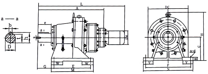 注:1、表中所列尺寸单位为毫米,重量单位为千克,功率单位为千瓦。 2、所用电动机为Y系列及YA增安型,配YB,YEJ,YCT电动机与公司方联系。 3、D轴径配合为h6。 4、B系列安装尺寸参照单级尺寸。 |