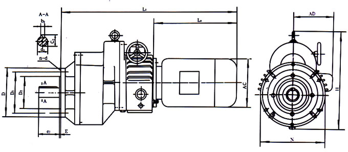 | 机型号 | 安装尺寸 | 输出轴伸端联接尺寸 | 外形尺寸 | ||||||||||||||||