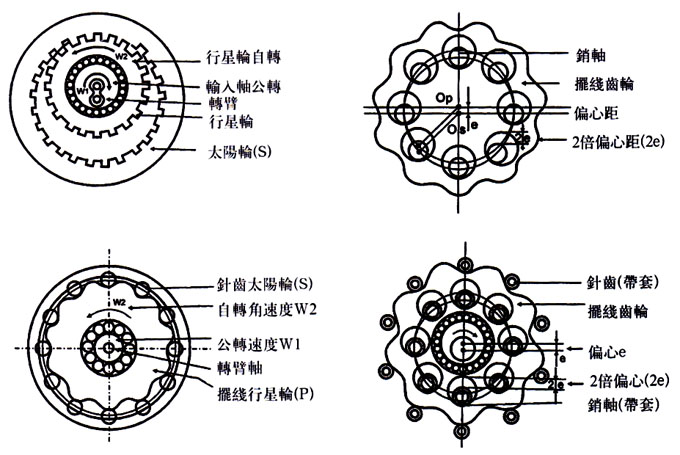 图4为上述两个机械组合的摆线减速器传动原理图。