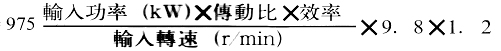 ②首先查表表七在搅拌器一栏内找载荷分类固液混合为II类、中等冲擎载荷,再查表六中的工况系数为1.35.